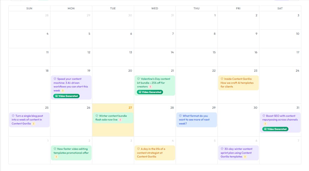 AI-planned topics, dates, and categories ready to execute