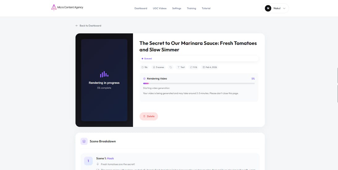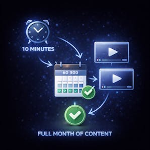 Client onboarding: ~10 minutes. Individual video rendering: approximately 4–6 minutes (happens in the background). You can generate a full month of content topics and scripts for a client in under an hour.
