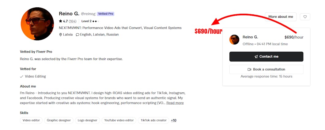 Reino G. (Vetted Pro) – $690+ per project for Instagram and TikTok ads