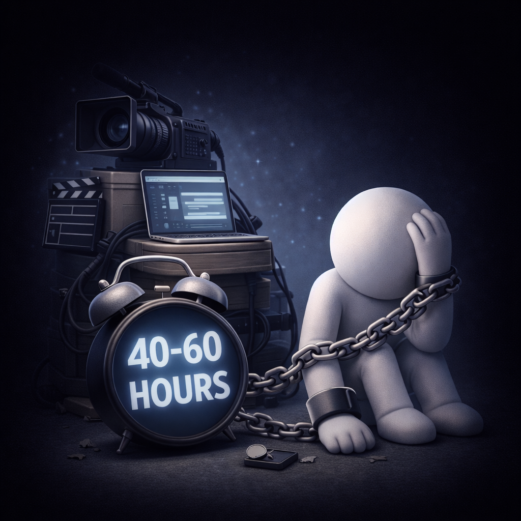 Traditional video agency: 40-60 hours per client.