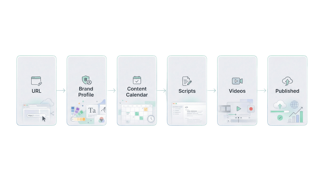 What it does: You paste in a business website URL, and the system automatically builds a brand profile, creates a 30-day content calendar, writes the scripts, and generates ready-to-post videos.